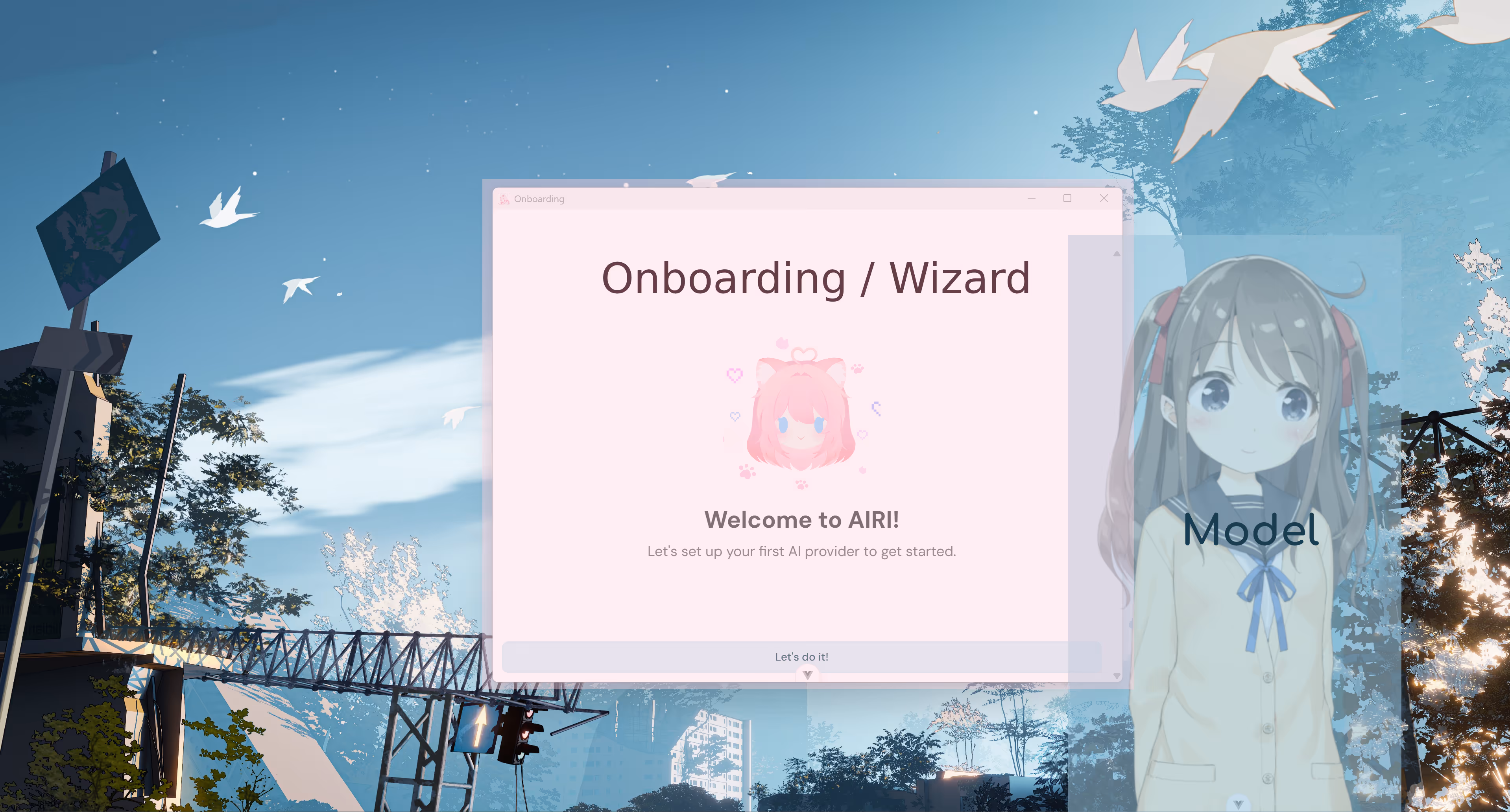 After downloaded, start AIRI from anywhere. You will see the user interface consists of two parts: